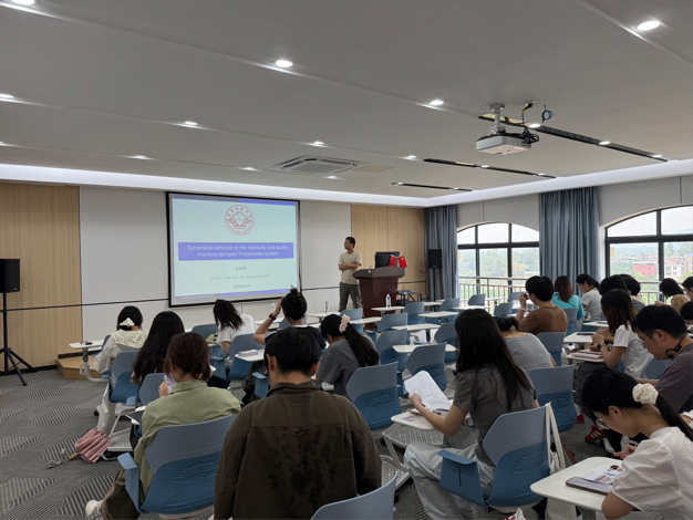 2026 年 4 月 14 日下午 15:00,数学与统计学院靳鲲鹏教授作题为《Dynamical behavior of the indirectly and locally memory-damped Timoshenko system》的学术报告。学院相关领域教师及学术型研究生参加本次学术活动。