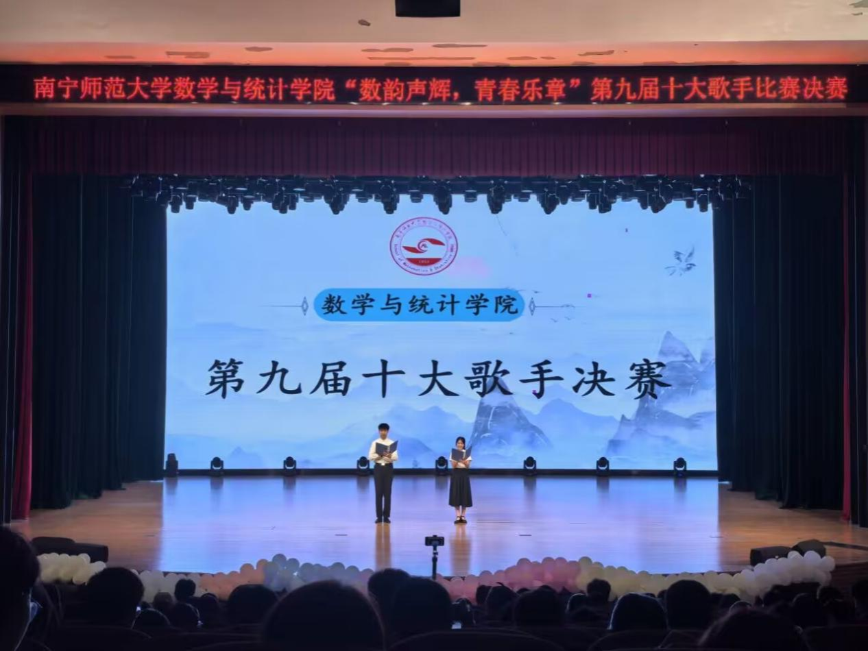 为促进数统学子交流,丰富课余生活,展现青春风采,增强集体归属感,助力学生全面发展,10月12日,数学与统计学院在音舞楼千人演播厅举办第九届十大歌手决赛。学院辅导员卢若楷、滕容梅老师,学院团委副书记莫锦萍、党建常务封艾利,音乐与舞蹈学院嘉宾代表李杭峰,2025级各班助班及全体同学到场观看。