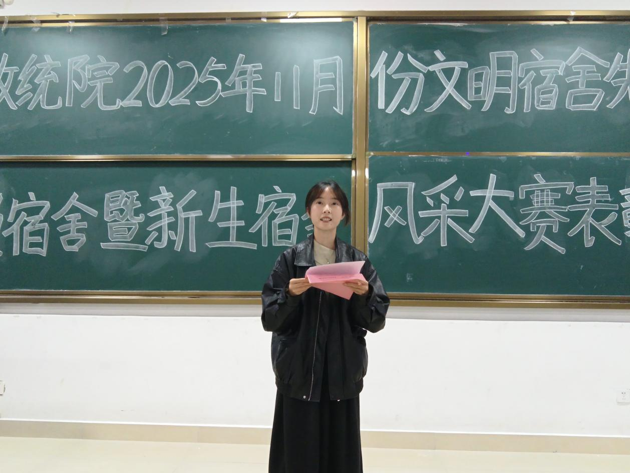 大会流程紧凑,且内容充实。首先进行各奖项颁奖环节,依次为“文明宿舍”“先进党员宿舍”“新生宿舍风采大赛优秀宿舍”授奖;随后,辅导员方安琪聚焦宿舍管理核心要点展开讲解,涵盖宿舍用电规范、灭火器与安全出口使用等消防安全,楼道杂物清理等环境维护,假期断电等安全习惯,作息规律、心理调适渠道等调节身心健康方式,个人信息保护、防诈骗网络安全及艾滋病知识普及与反歧视防艾宣传等多维度内容;最后,全体参会人员合影留念,大会在有序的交流中落下帷幕。