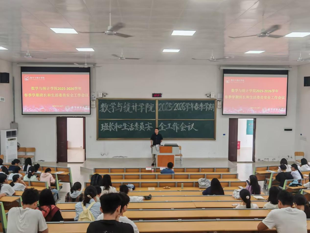 为进一步筑牢校园安全防线,强化班级安全管理,3月26日中午,数学与统计学院在实验1-B113教室召开2026年春季学期班长及生活委员安全工作会议。学院党委副书记王卫彬、辅导员卢若楷以及各班班长、生活委员参与本次会议。