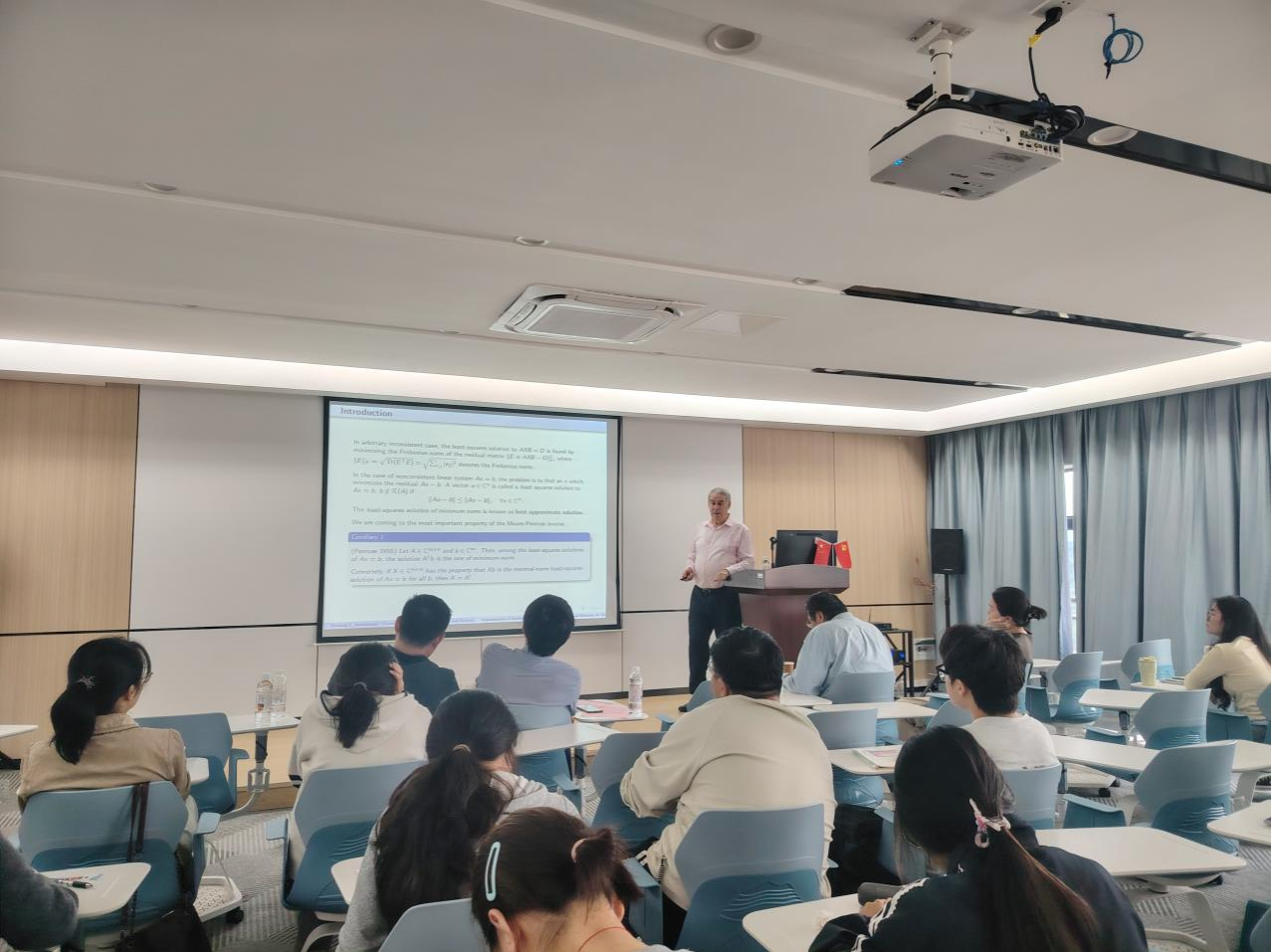 2025年11月8日,应广西应用数学中心(南宁师范大学)的邀请,塞尔维亚尼斯大学STANIMIROVIC PREDRAG教授为中心骨干成员以及硕士研究生做了题目为《基于C-积的三阶张量特征值计算》的学术报告,报告由数学与统计学院刘利斌副院长主持。