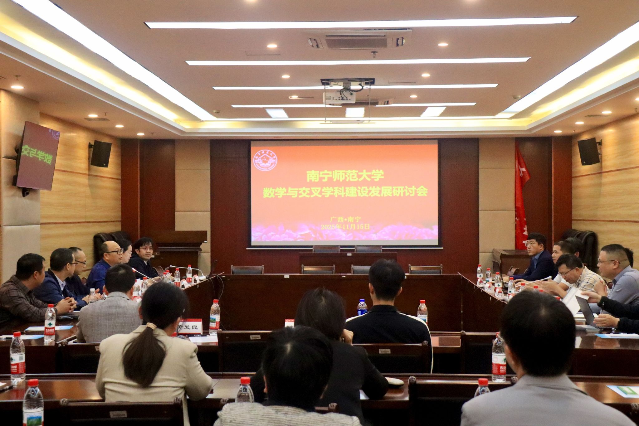 为响应全球科技跨学科融合趋势,破解跨学科人才短缺、合作机制不完善等发展难题,11月15日,南宁师范大学数学与交叉学科建设发展研讨会在明秀校区图书馆二楼会议室顺利召开。本次会议以 “数学赋能・交叉创新・服务地方” 为主题,由数学与统计学院主办,人工智能学院、物理与电子学院、地理与海洋研究院联合承办,凝聚多领域智慧探索协同创新新路径。