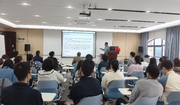 2025年12月22日,应广西应用数学中心(南宁师范大学)以及数学与统计学院的邀请,湘潭大学李继春教授为学院师生作了题为“超材料与石墨烯中麦克斯韦方程的有限元分析及数值模拟”的学术报告。报告由数统学院黄在堂院长主持,全体学术型研究生参与了此次学术活动。