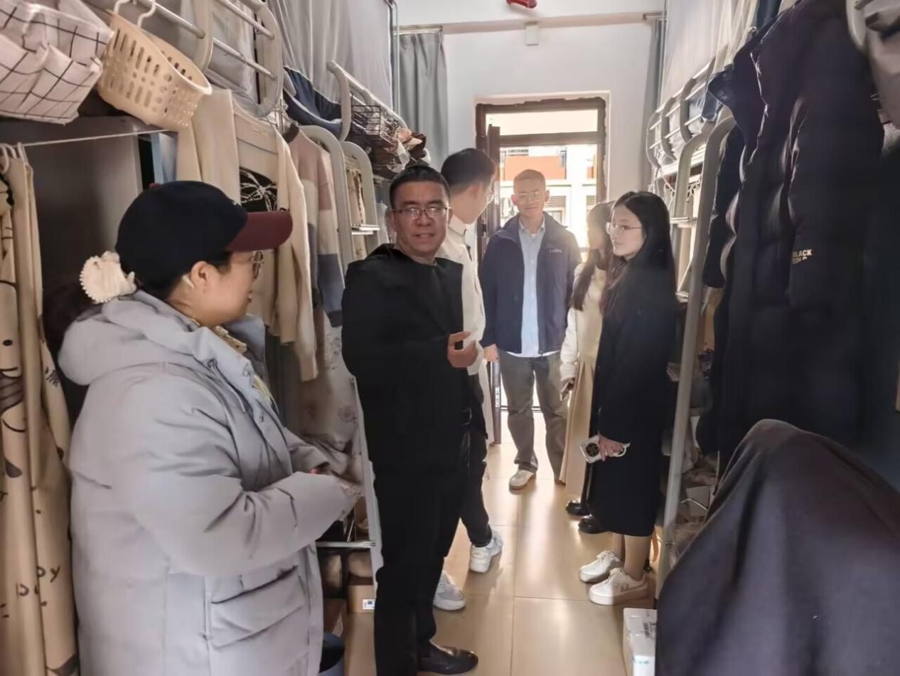 为切实筑牢宿舍安全防线,了解学生寒假离校安排,缓解学生期末备考压力,1月8日,数学与统计学院组织开展2026年寒假前宿舍安全关怀走访。学院党委副书记王卫彬,团委书记梁卡霖,辅导员张硕、卢若楷、滕容梅、方安琪带领团委学生会学生代表参与本次走访。