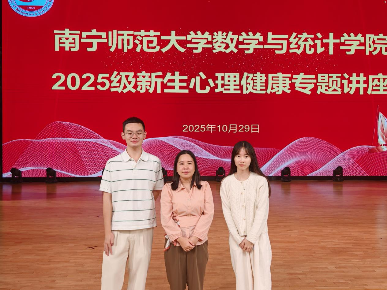 为助力2025级新生平稳过渡入学适应期、筑牢心理成长根基,10月29日,数学与统计学院在音舞院千人演播厅组织开展“启航新程:智驭风浪,寻我之路”新生适应主题讲座。讲座邀请南宁师范大学心理健康教育咨询中心覃宏源老师作为主讲人,学院辅导员卢若楷老师、方安琪老师以及2025级全体新生参与本次活动。