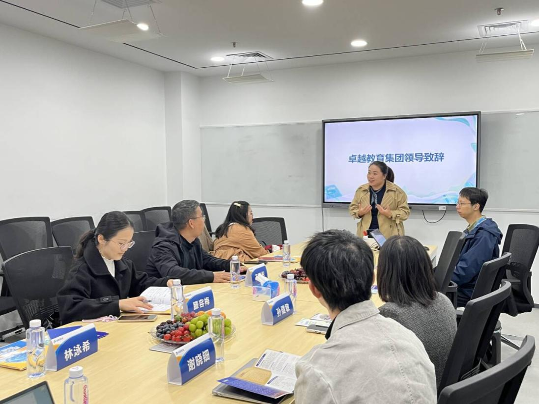随后的座谈会上,伍金玲校长对来自母校南宁师范大学的老师同学们表示欢迎,并介绍集团发展与校区优势,希望能有更多来自母校的学弟学妹加入卓越教育集团;王卫彬副书记详述学校办学特色、学院学科建设及毕业生情况,期待深化合作;校招高级招聘管理师车力行讲解集团发展、员工培养体系,重点介绍素质教育实践与线上AI教学成果。