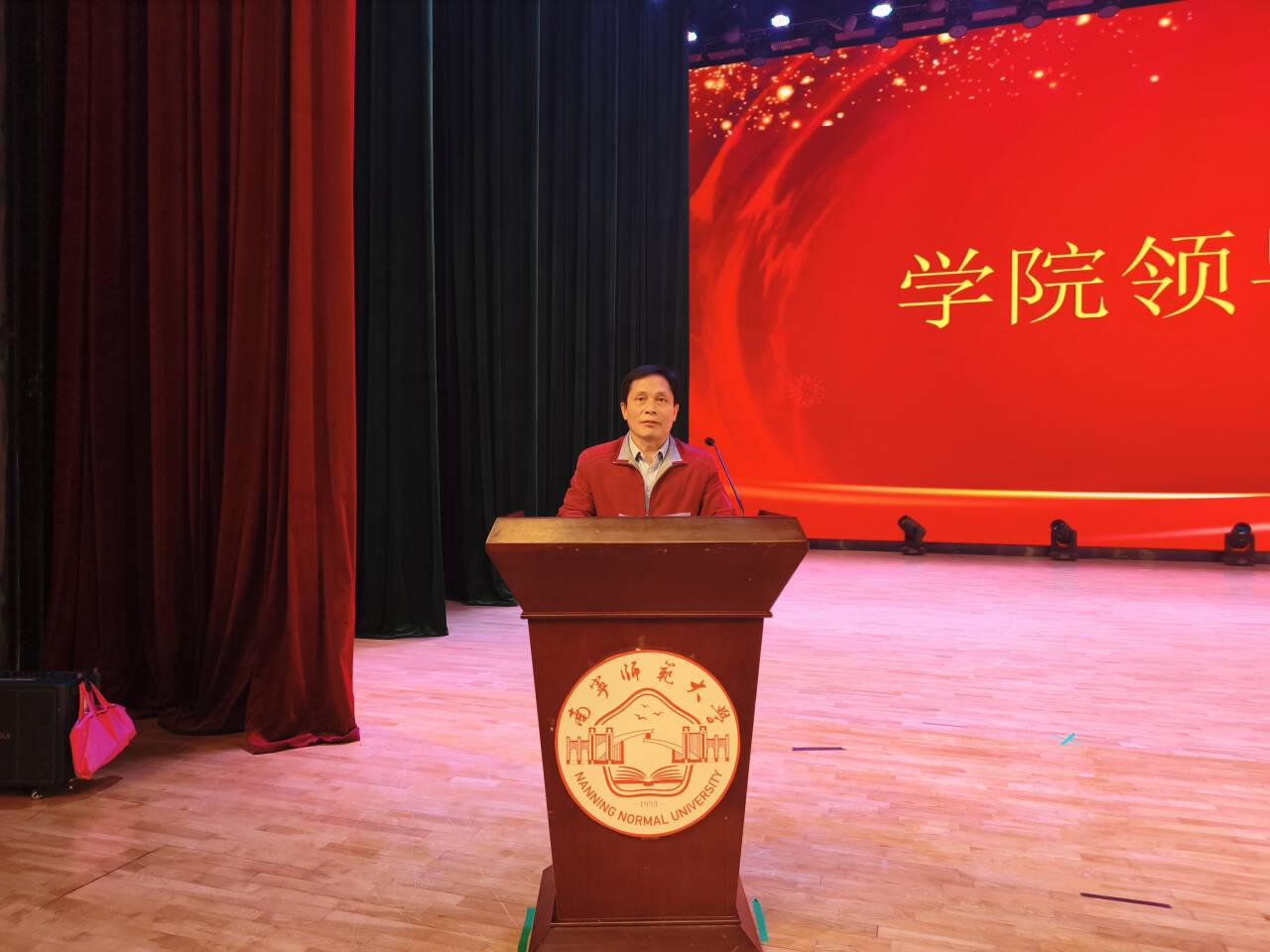 大会尾声,学院党委余敢才书记发表寄语。他以学校“德才并育,知行合一”校训为切入点,肯定了获奖集体与个人的优异表现,同时勉励全体数统学子以榜样为镜、以先进为尺,既要扎实掌握专业知识、锤炼过硬本领,也要坚守初心使命、涵养品德修为,在学习中求真知,在实践中长才干,以青春之姿在成长道路上不断攀越新高,为学院发展、学校建设贡献青春力量。